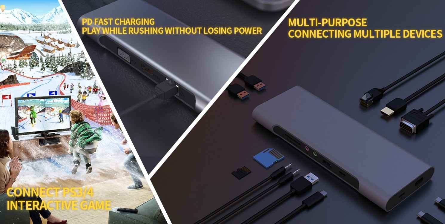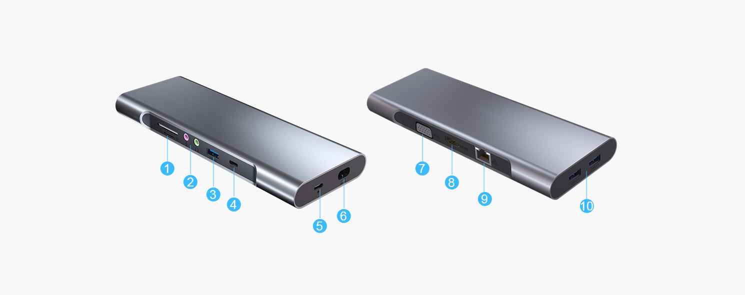 在这个码头,你可以看到完整的功能,支持USB-IF,解决您的端口不兼容的问题,有100瓦快速充电,HDMI [email protected]输出扩展,3个USB-A端口,足够您的桌面鼠标、键盘等设备连接,增加读卡器功能,快速存储和传输您的文件。当然,适用于Windows和macOS系统的任何电脑。