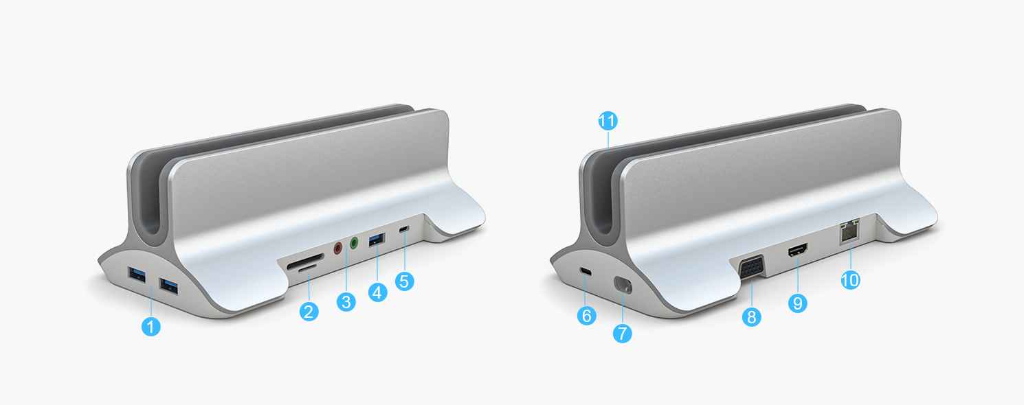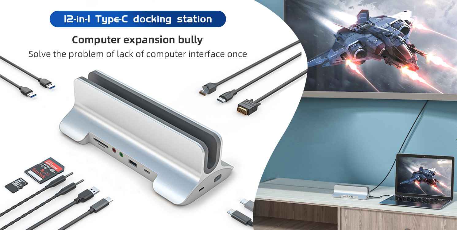 无论你是在家里还是在办公室工作,这个USB-C对接站支持PD 100W,而不用担心电源供应。支持VGA、HDMI两屏视频输出扩展,最重要的是可以f放置空闲的笔记本电脑。