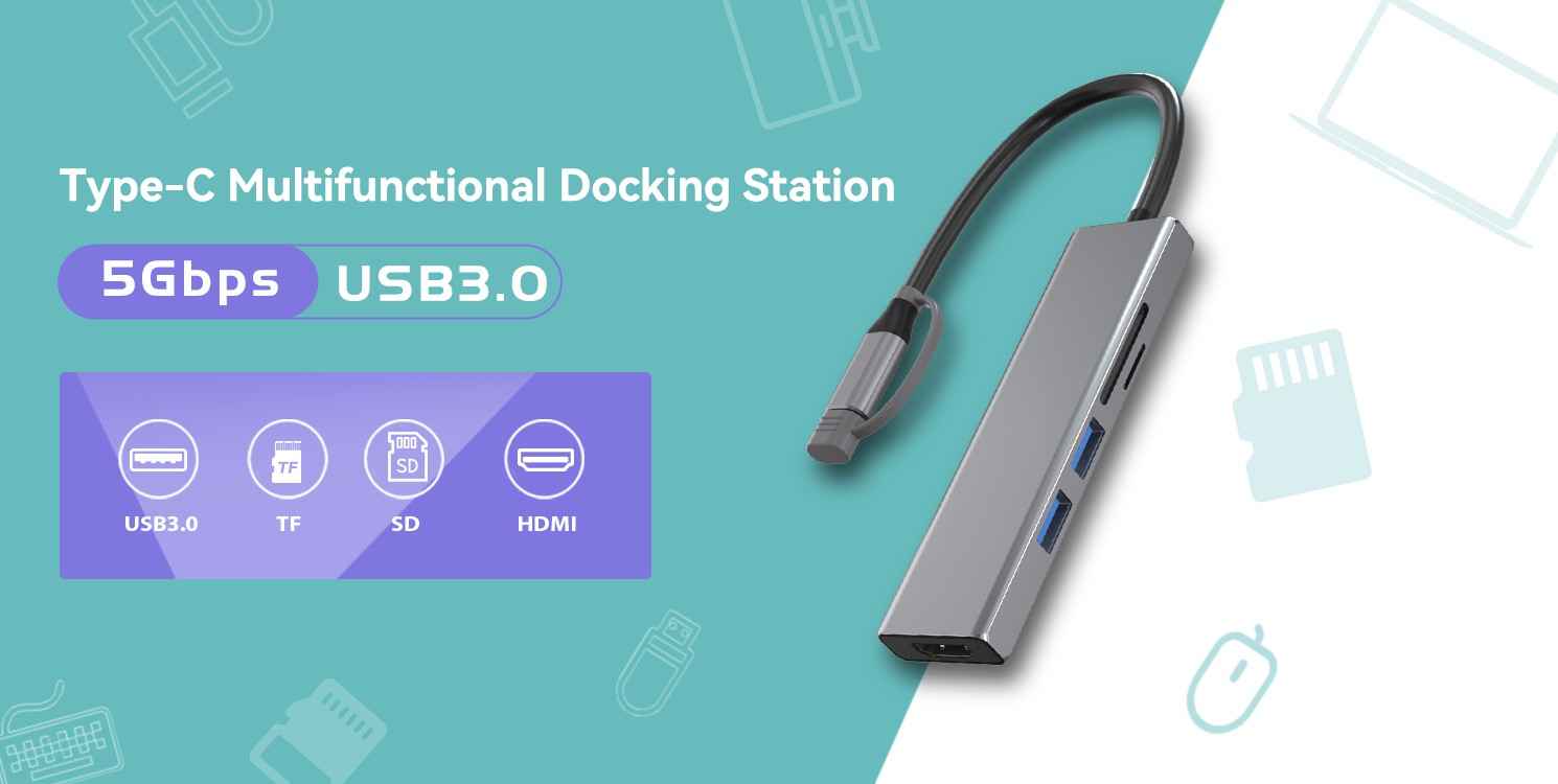 笔记本电脑单线便携式 USB 3.0 集线器,带 HDMI 和读卡器