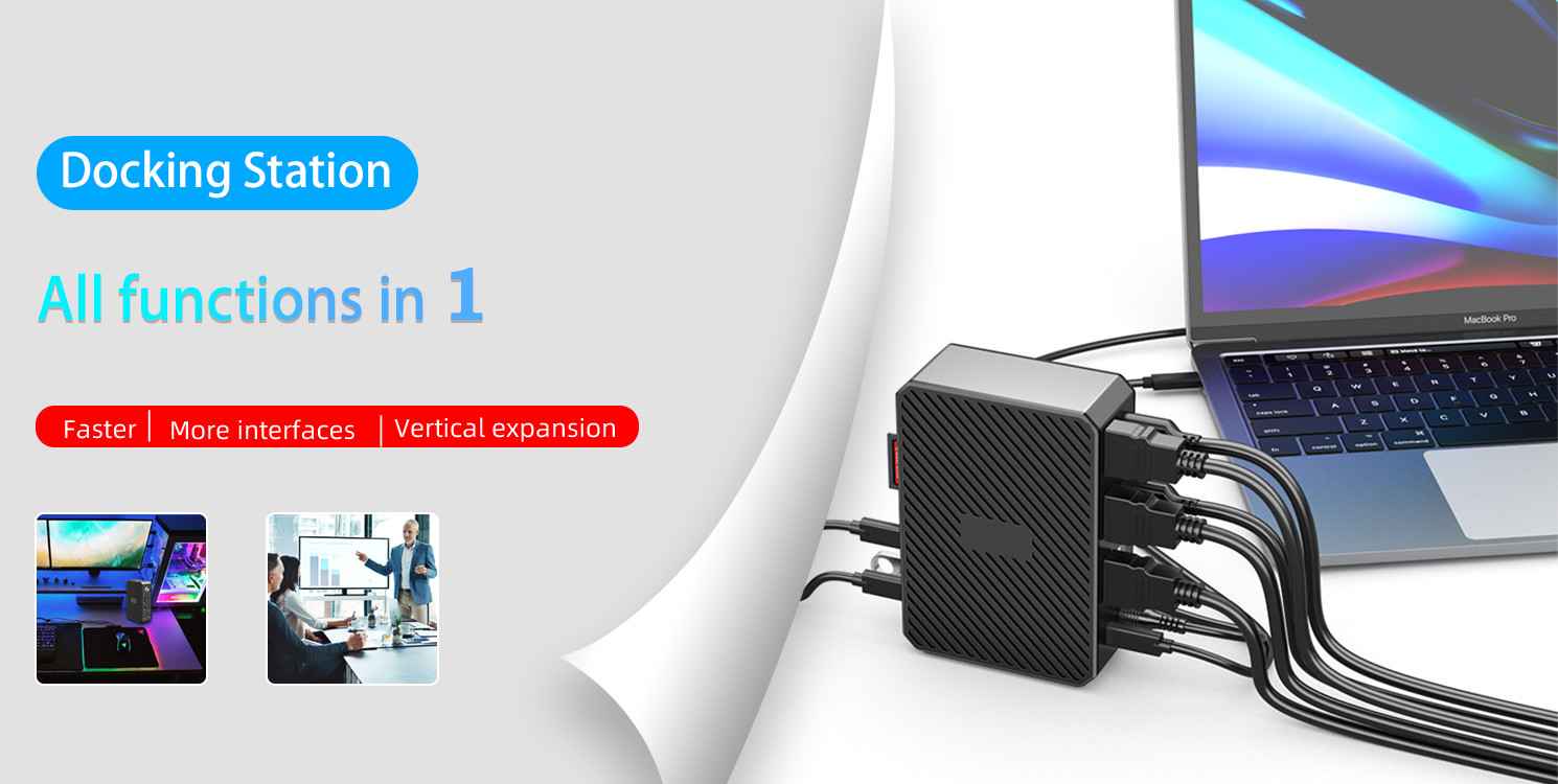 在这个扩展坞中,通过10万次的按键测试,超强的按键耐用程度,超长的使用寿命,windows 系统下支持MST和SST显示方式,MacOS 系统支持SST显示方式。120瓦的供电稳定地满足多屏幕扩展应用。当然,适用于Windows和macOS的任何计算机。