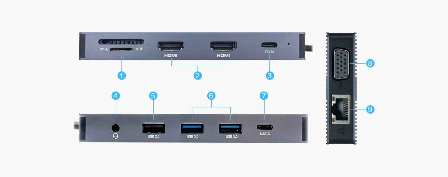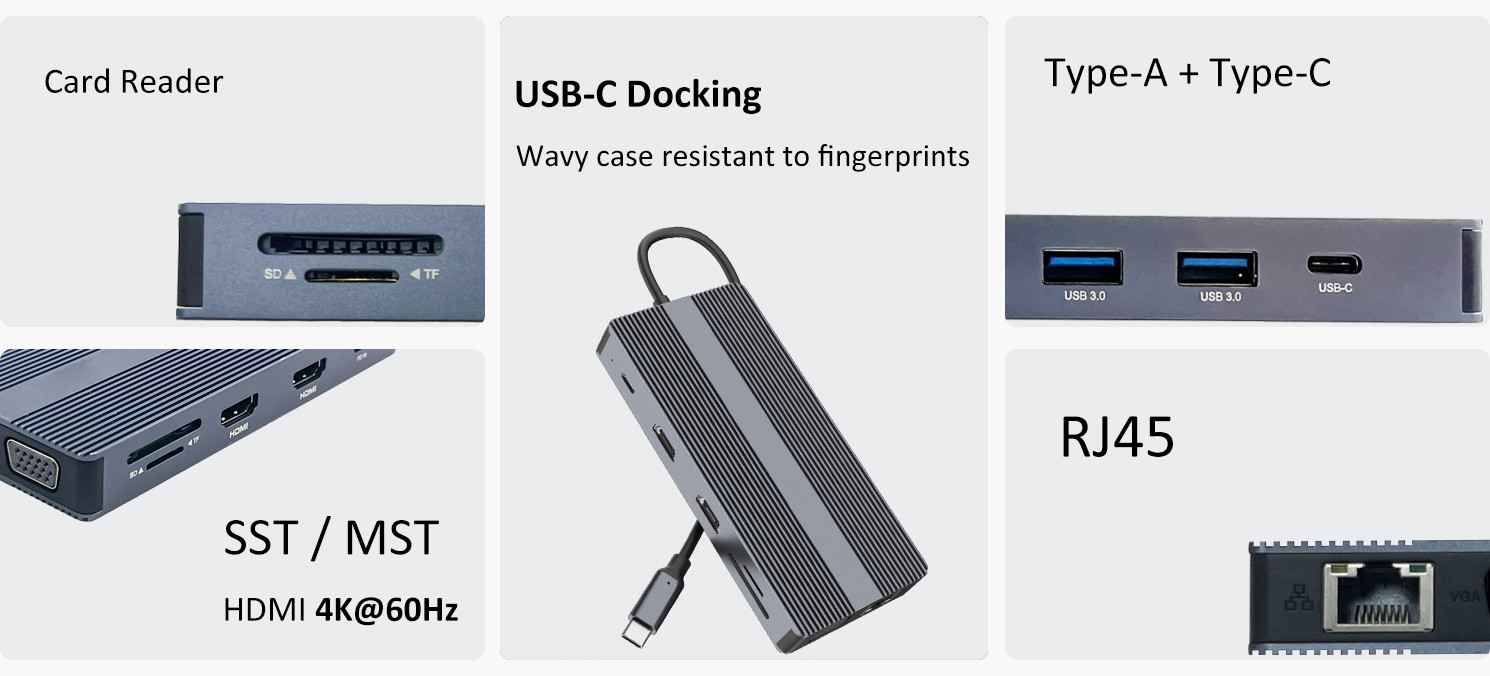 在这个扩展坞中,windows 系统电脑支持MST和SST扩展显示方式,MacOS 系统电脑支持SST扩展显示方式。PD 100W技术配置为稳定地满足多屏扩展应用。当然,适用于Windows和macOS的笔记本电脑。