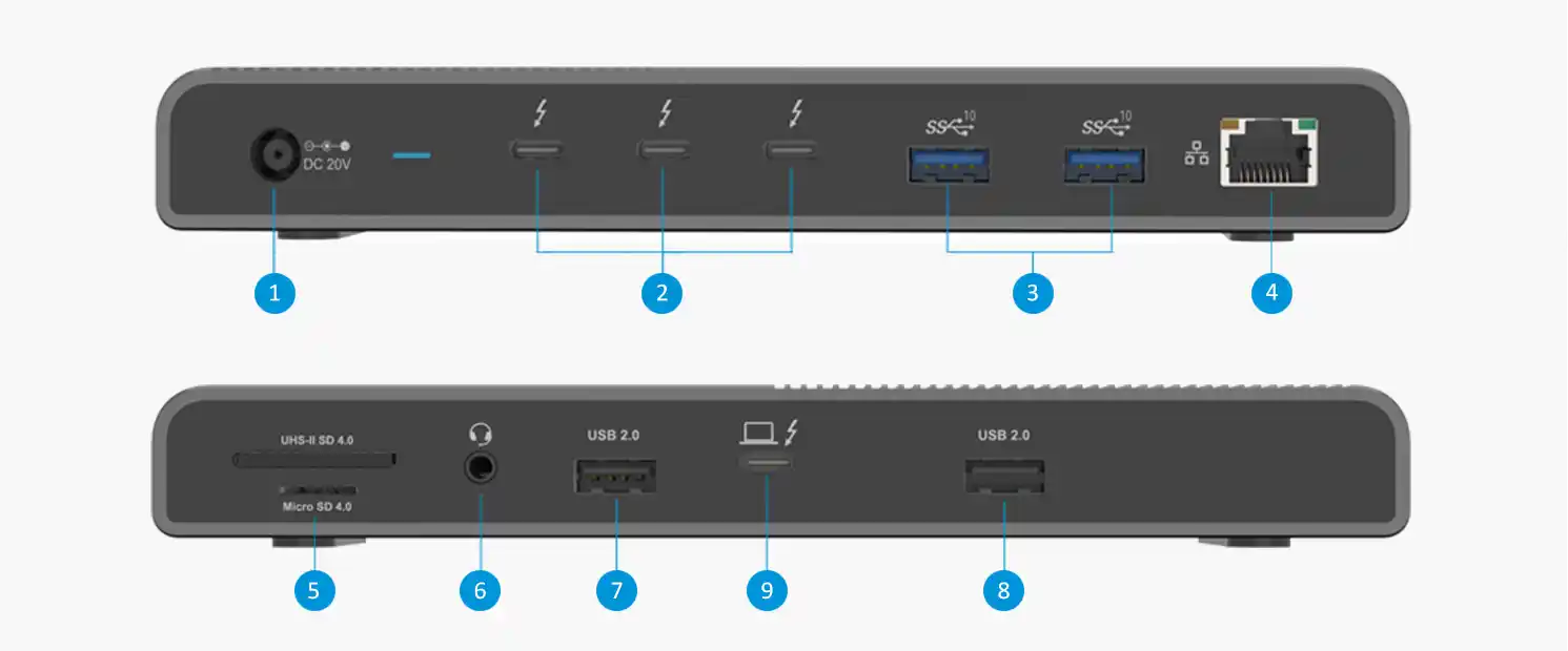 在这个坞站,你可以看到最创新的设计外型,充满先进的功能,支持Thunderbolt和USB-IF两种协议,解决您的端口不兼容的问题,40Gbps传输速率,SD 4.0读卡器,快速4K视频传输,150W电源适配器。当然,适用于Windows和macOS的任何计算机。